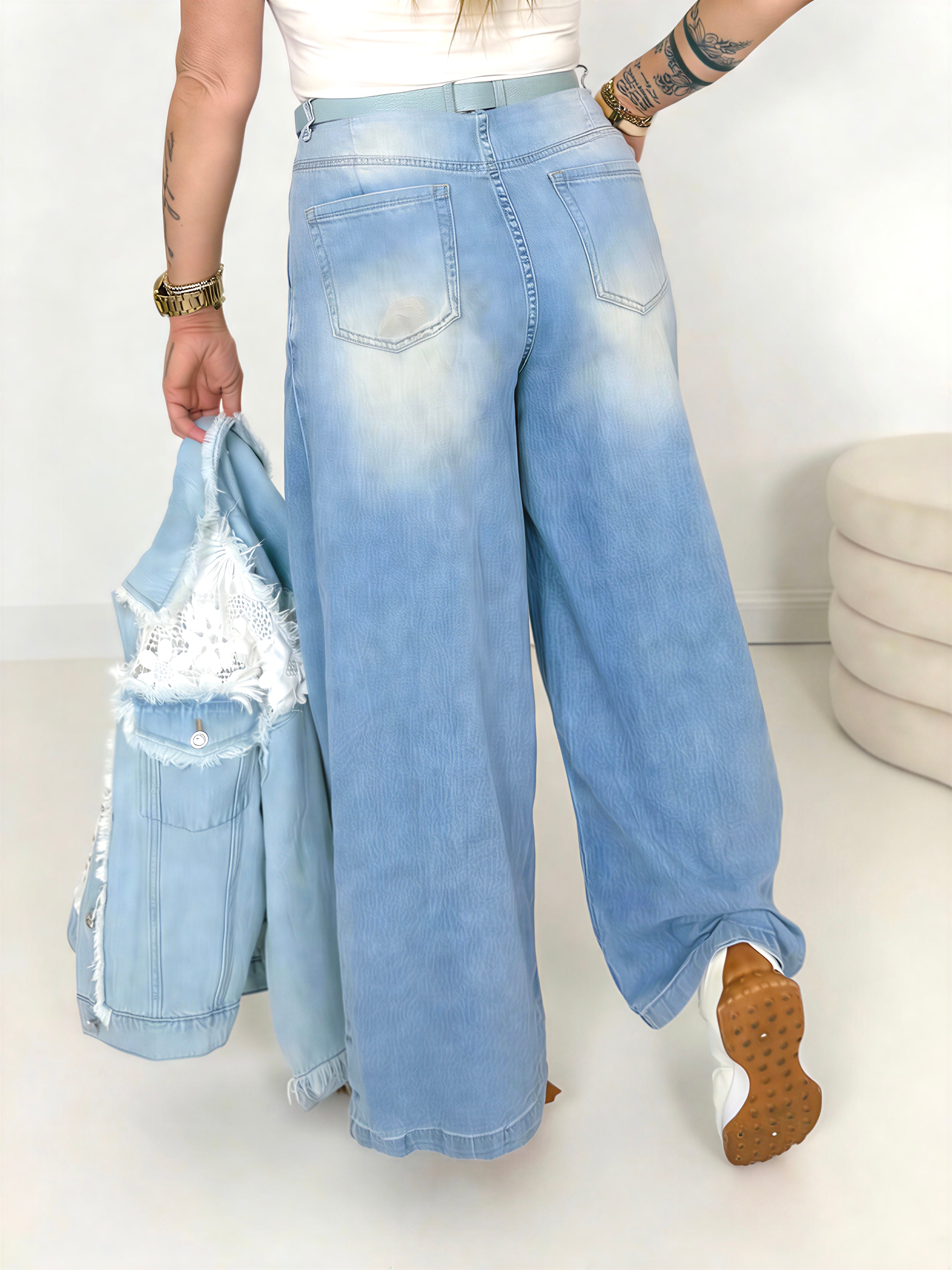 Das Model hat die Konfektionsgröße 38 (1,70m)