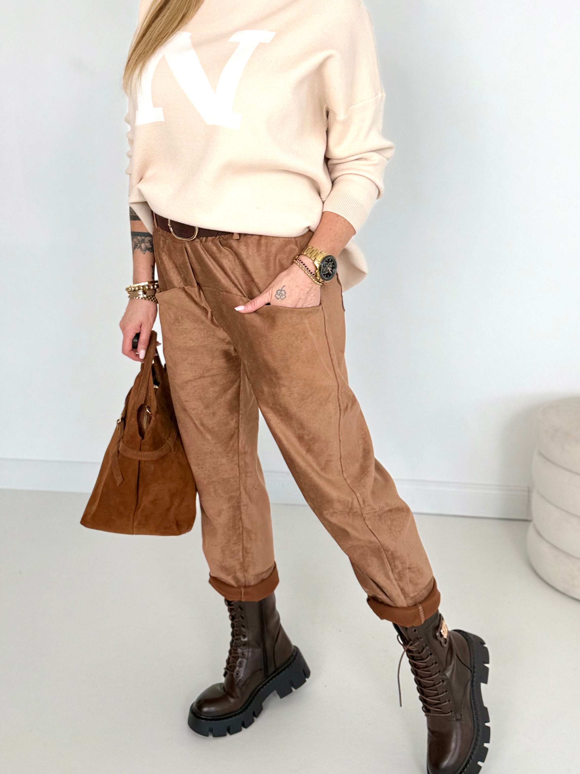 Pantalones elásticos con cinturón