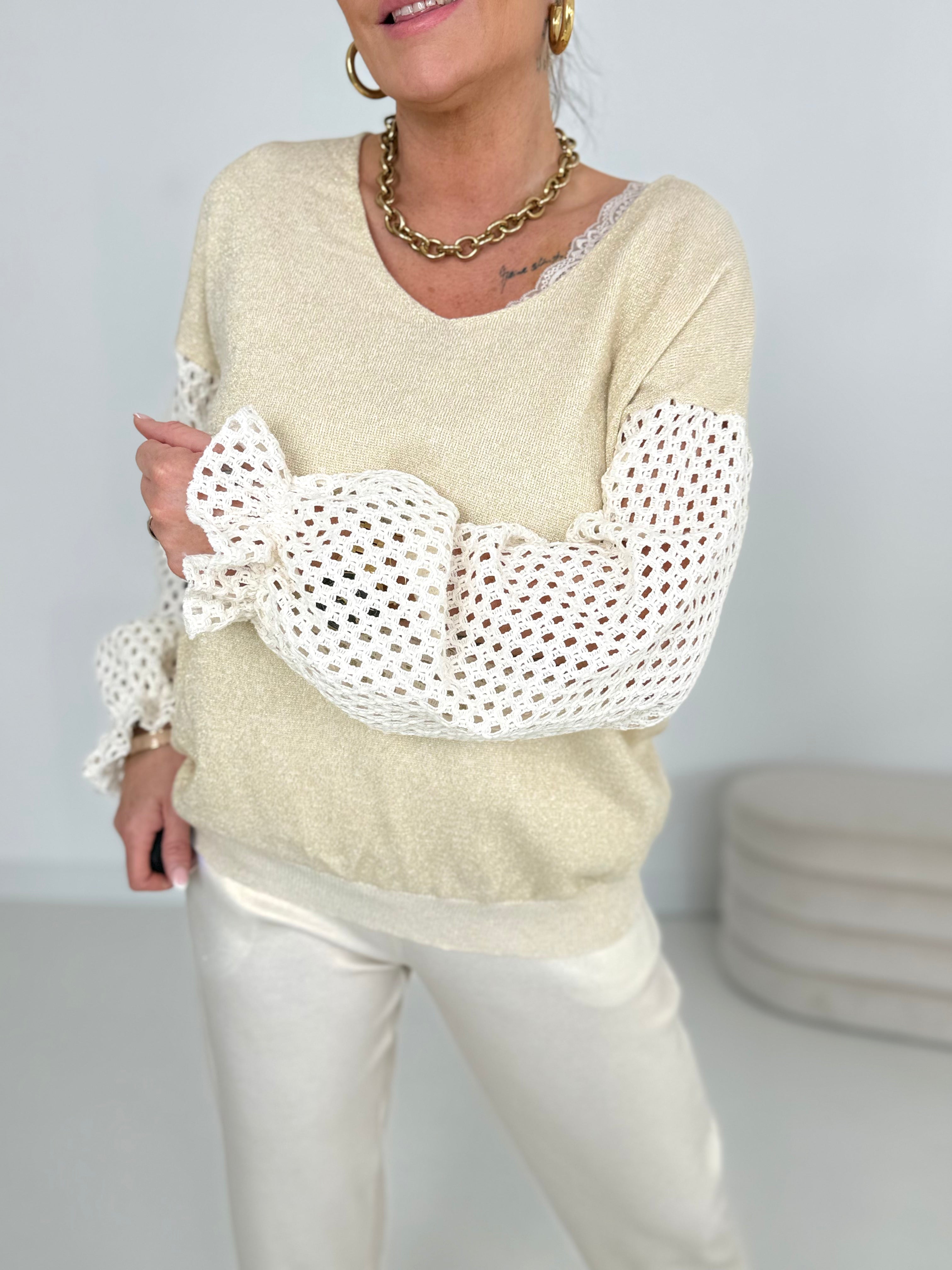 Pieza de punto con hilo de lurex dorado y
