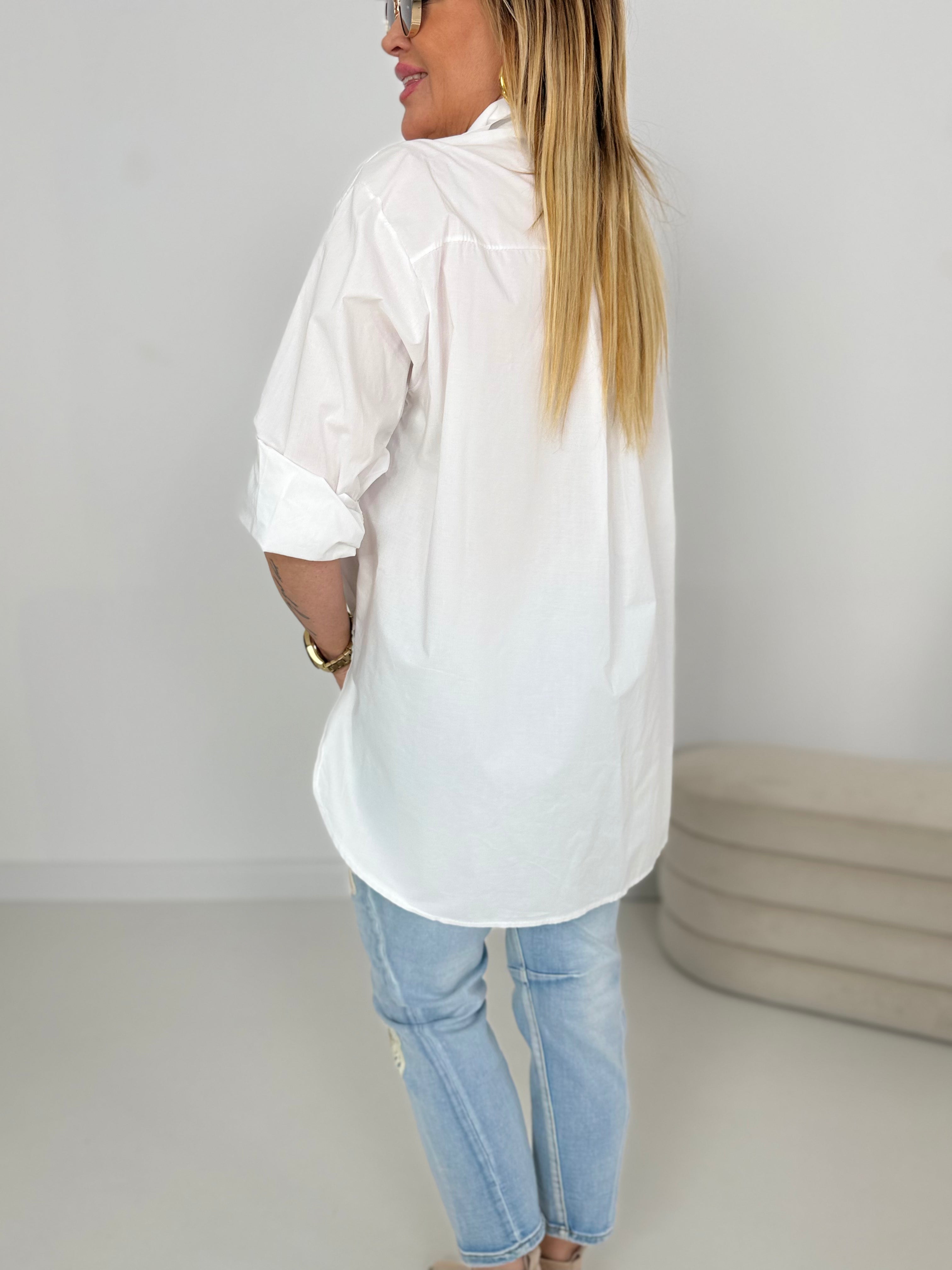 Vorne dekoriert mit Strasssteinen, Perlen & Print